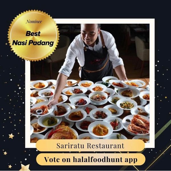Sari Ratu Restaurant dengan bangga memenangkan penghargaan "Best Nasi Padang" di aplikasi Halalfoodhunt!